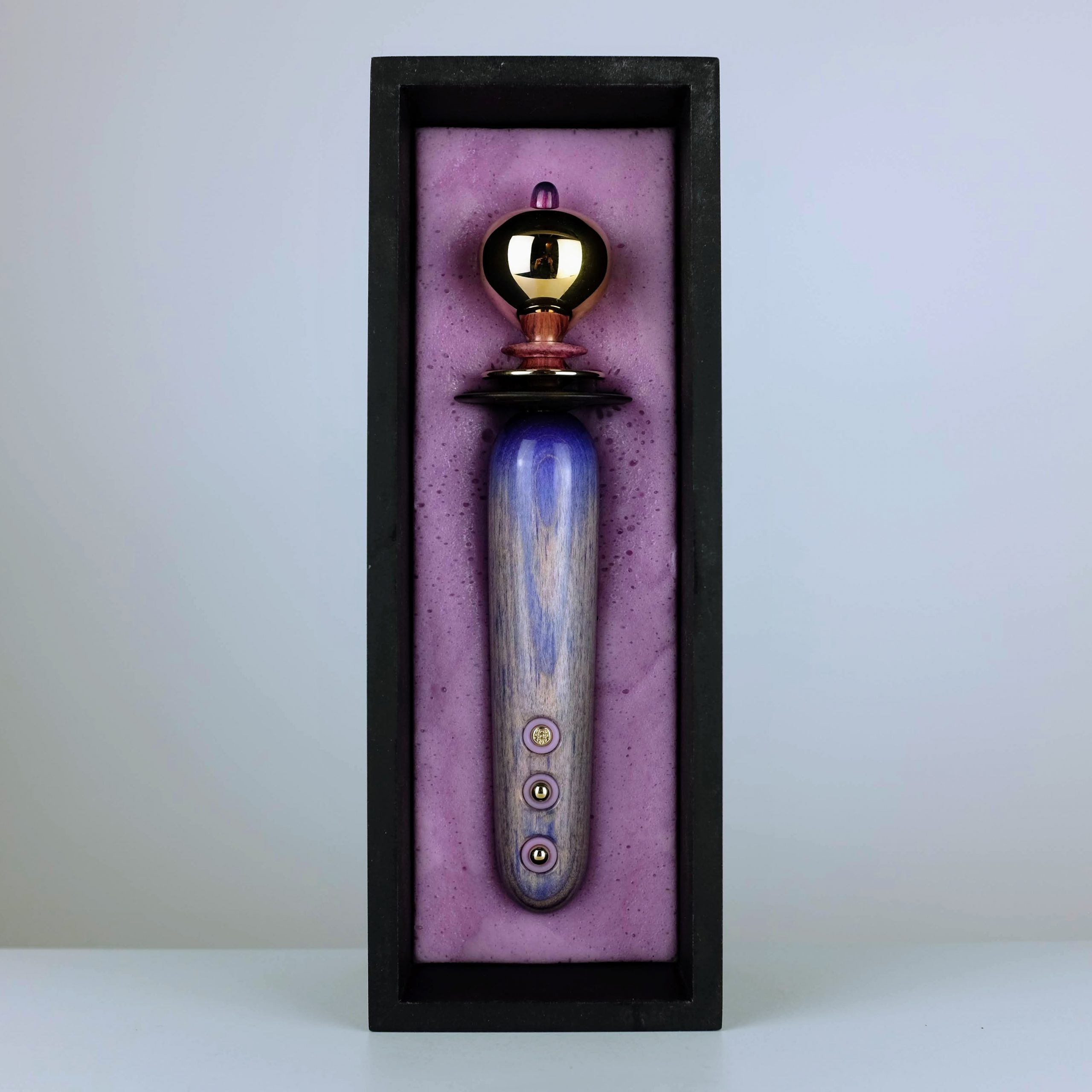 Materials : Stabilized Sycamore wood, Macassar Ebony, body safe silicone,18k Gold
