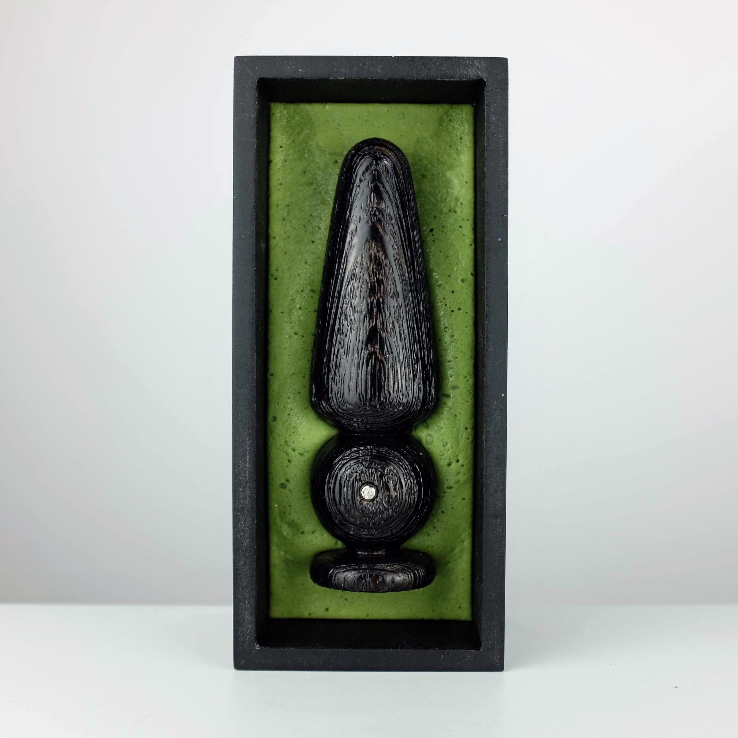 « Lost in the Alpilles » is one of a kind erotic tool. Made of brushed wengué, its specific texture plays with the pattern and the coulour of the dark wood. The object rests in a Valchromat box, on a silicone foam base designed to protect and enhance the piece. The simplicity of the lines and the raw appearance of this piece make it a timeless sensual artifact.